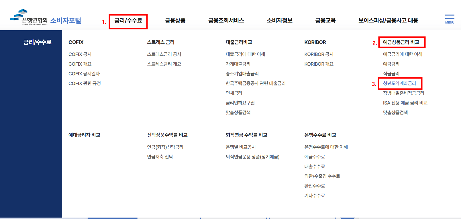 2. 금리/수수료 - 청년도약계좌 금리 클릭